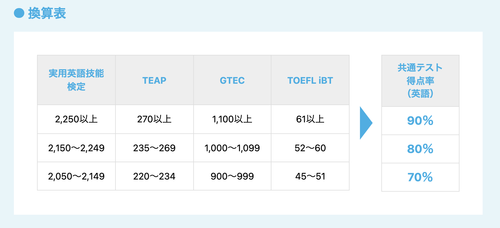つまり、英検3級で満点を取得できれば、共通テストで80%を得られます!