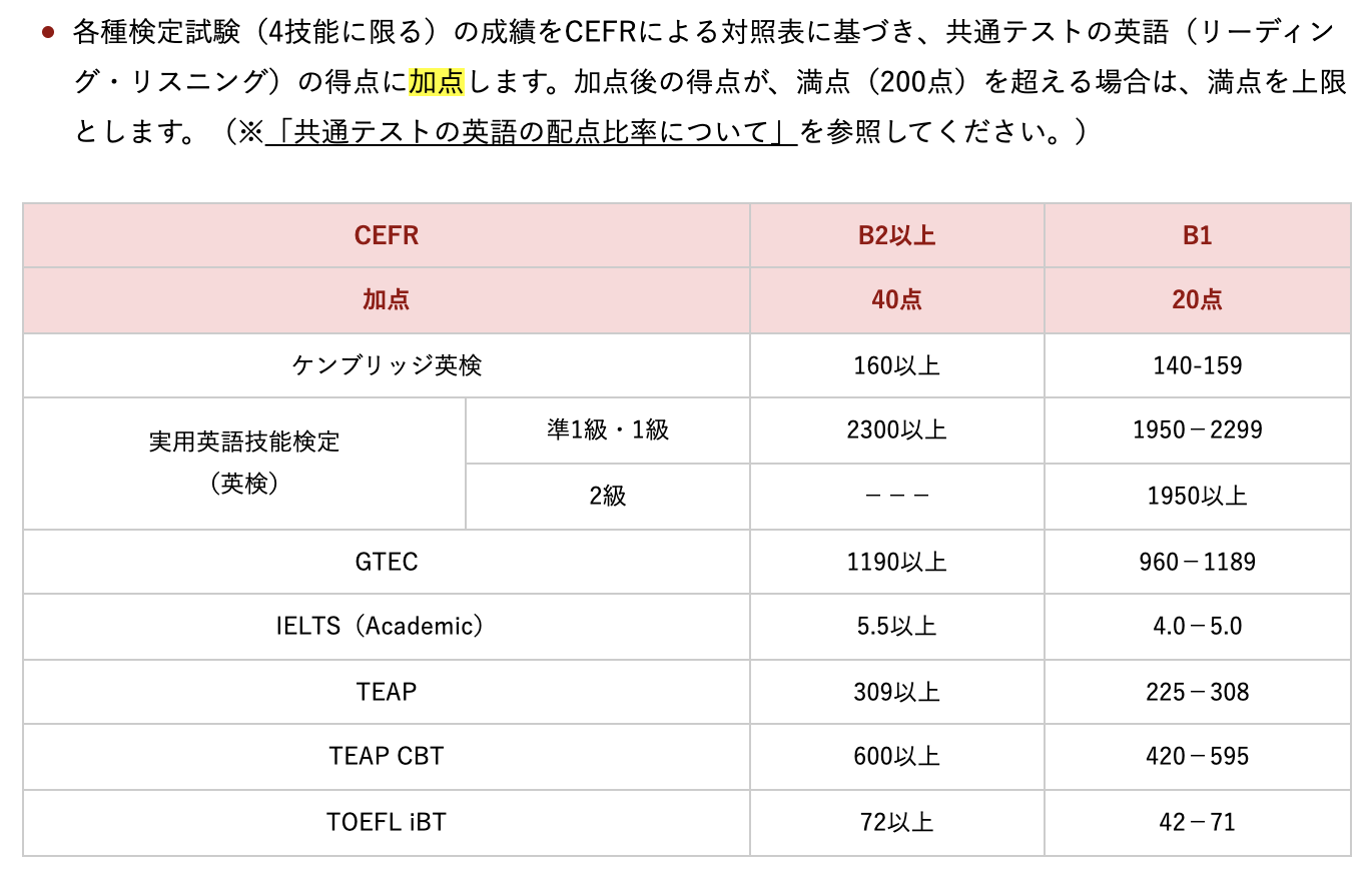 先に「各大学でどのように英検が利用できるか」について読んだ後に、