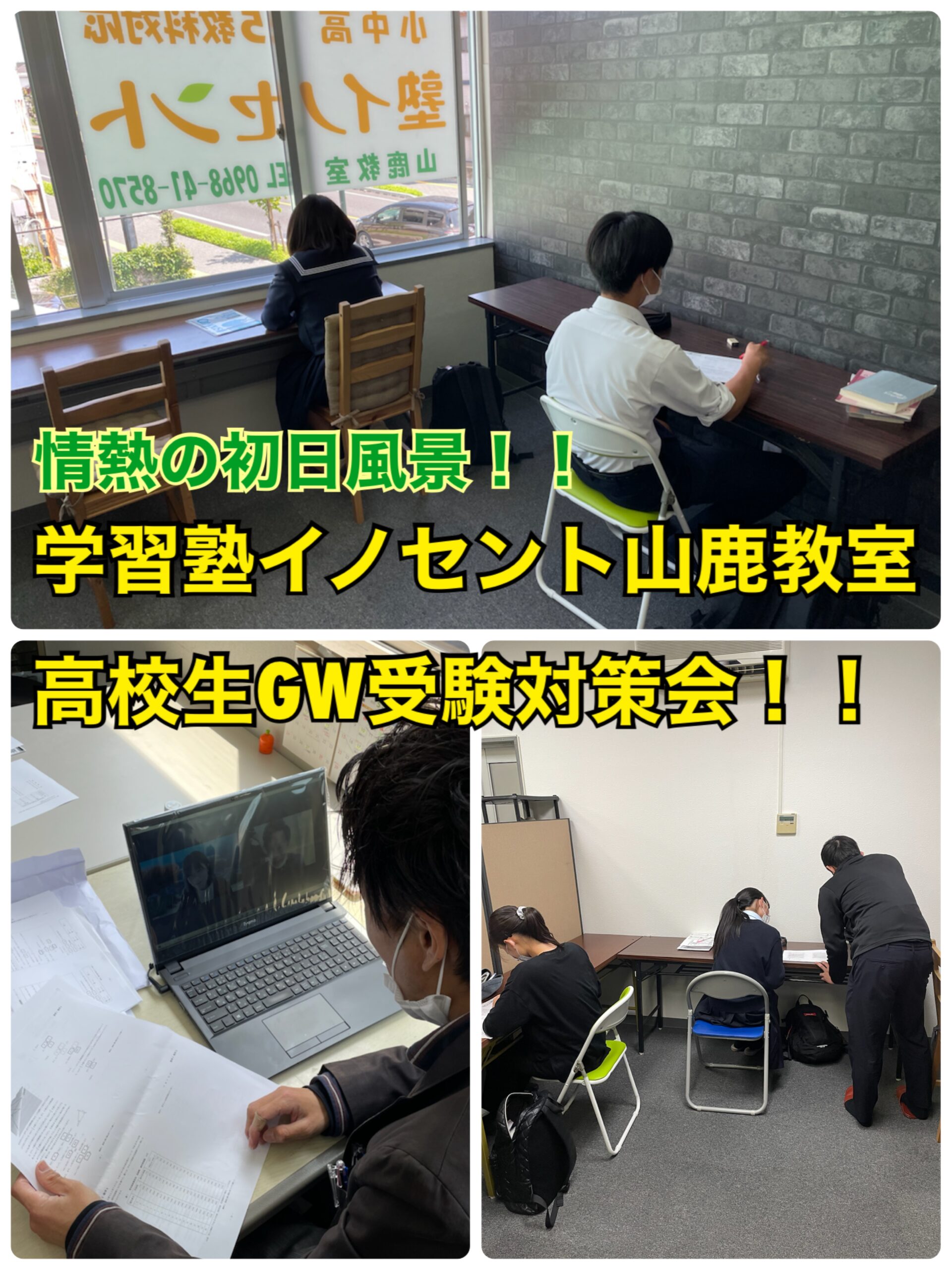 山鹿在住の高校生(鹿本高校・玉名高校・城北高校・菊池高校)の皆さんこんばんは。学習塾イノセント山鹿教室の井上です。