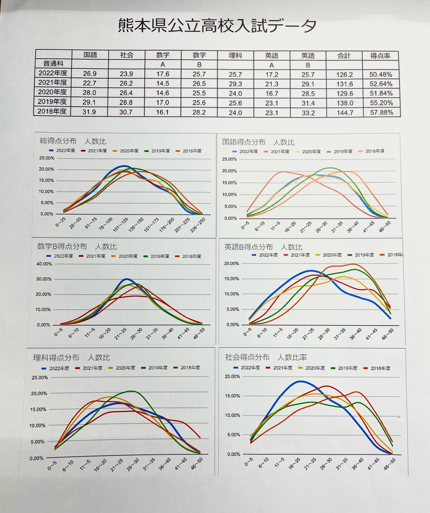 下の写真は熊本県公立高校入試5年分のデータです。