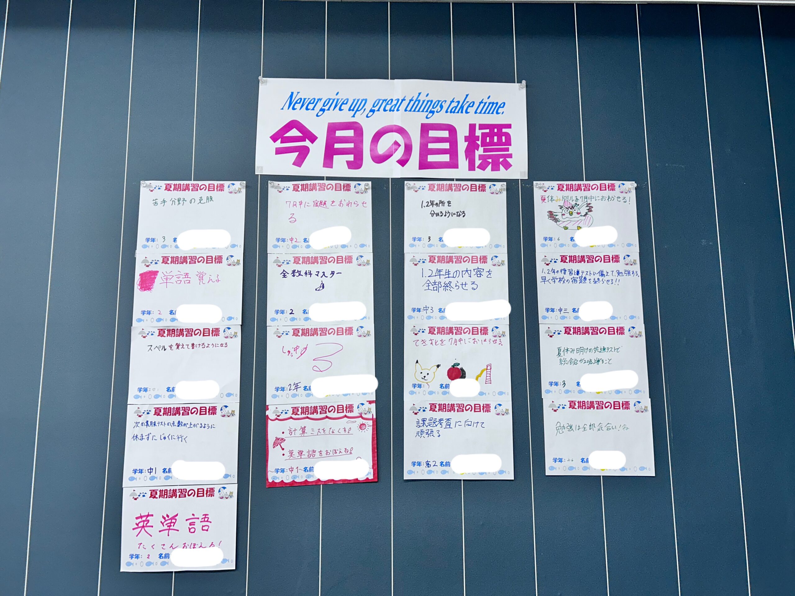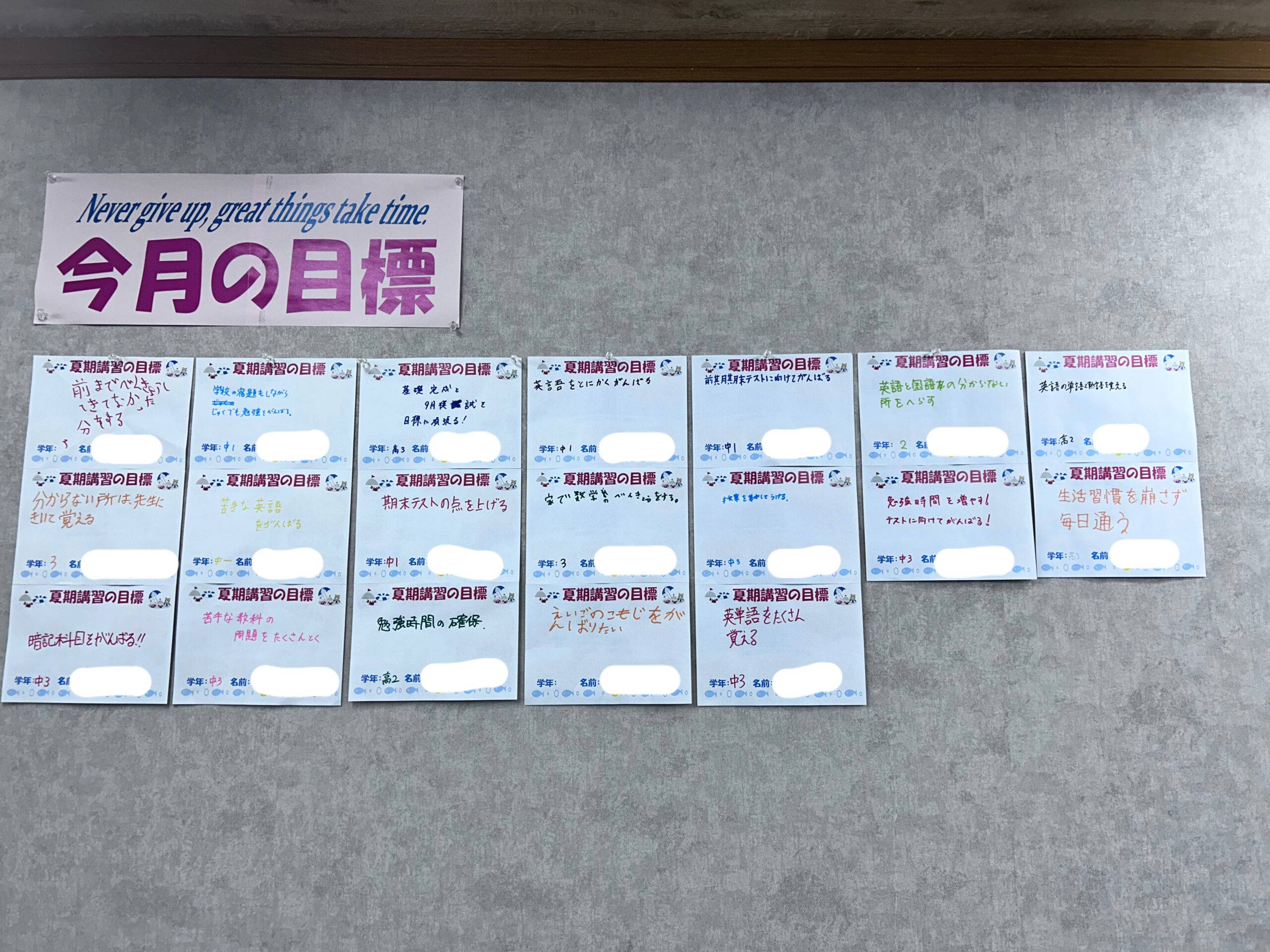 夏期講習が始まる前にみんなに夏期講習の目標を決めてもらいました。